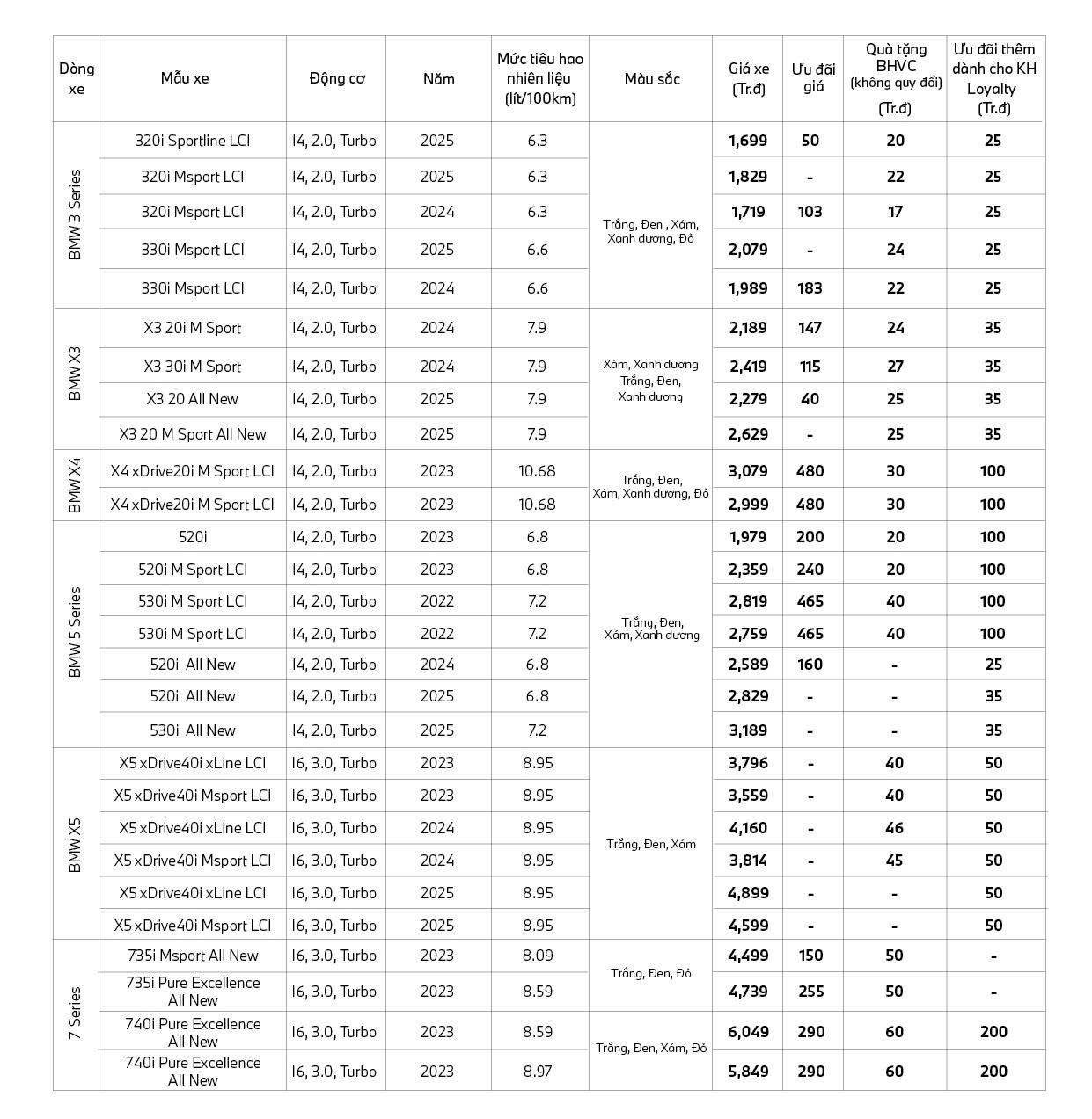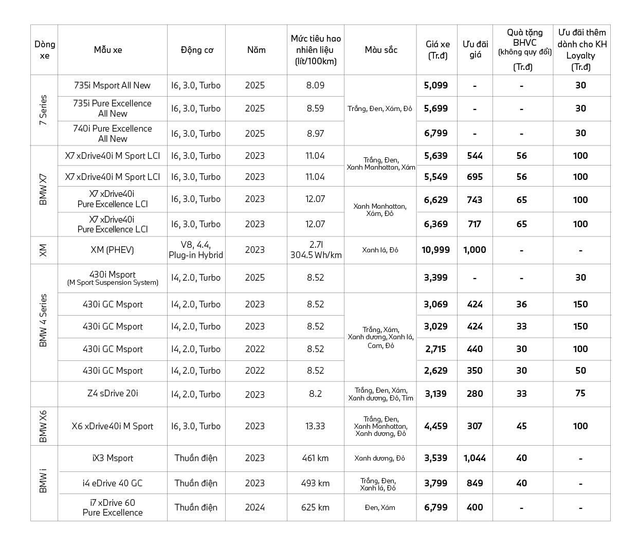 CẬP NHẬT BẢNG GIÁ XE BMW VÀ ĐẶC QUYỀN ƯU ĐÃI MỚI NHẤT THÁNG 10/2025