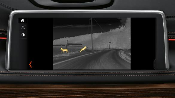 Có một camera hồng ngoại gắn trên màng lưới tản nhiệt của xe BMW sẽ truyền dữ liệu hình ảnh của người hoặc con thú trực tiếp lên màn hình điều khiển.